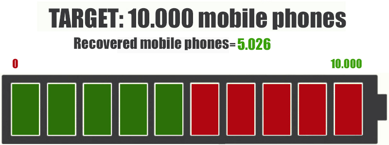 In this section you can see how far along we are in reaching our mobile phone collection target, with each block indicating the goal of 1,000 mobiles collected for a total of 10,000 mobiles for the Congo. The blocks will turn green as we get closer to our goal. When all blocks are green we will have collected a total of 10,000 mobile phones.